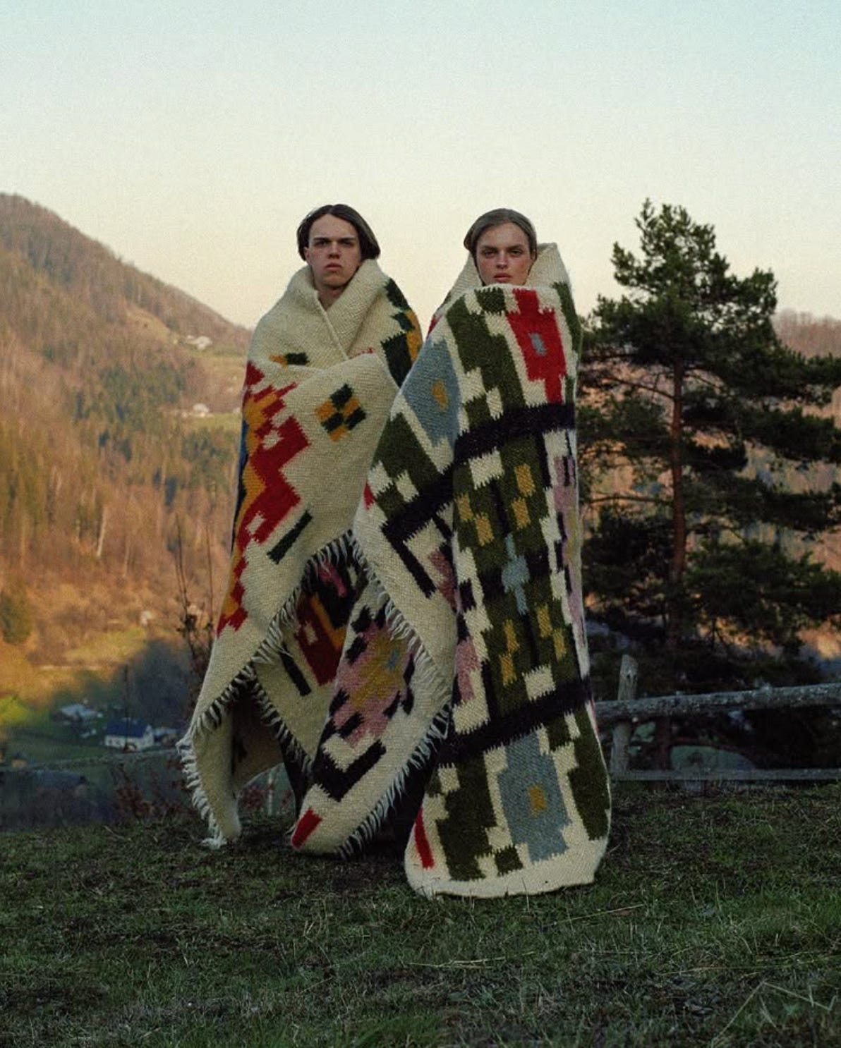 There is a personal link for me, of course, that some of you will recognise quite easily. My grandma was from Lviv and the Carpathian Mountains have always carried deep significance for my family. In 2016, I first worked alongside a community of women preserving their heritage, creating knitwear from undyed wool, spun from the sheep that graze the mountains.