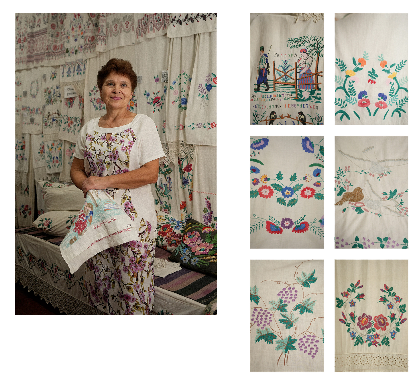 Etnodim’s ‘Memories of Visions’ collection, inspired by traditional Ukrainian embroidered kitchen towels, comes from working alongside Liudmyla Diduk, founder of the local history and culture museum in Mokra Kalyhirka, Cherkasy region. Her collection of almost a hundred embroidered towels is a testament to nearly five decades of honouring the cultural legacy.